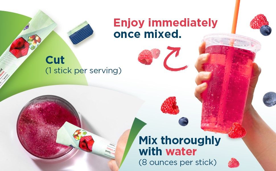 Add one (1) packet to at least 8 ounces of water and shake. Consume immediately after powder has dissolved. Normal serving suggestion is one to two packets daily.